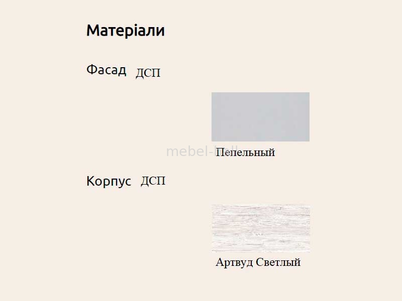 Фасад выполнен из ламинированного ДСП в цвете Пепельный.