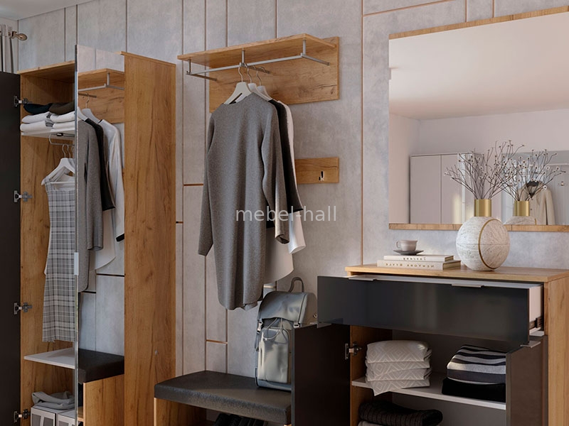 | Особенности: | С подушкой, С полками, С отсеком для обуви, С шкафом, С крючками, С шухлядами, На ножках, С зеркалом |