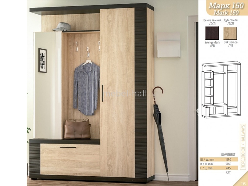 Прихожая Марк 150 Мебель Сервис Дуб Самоа Венге Темный