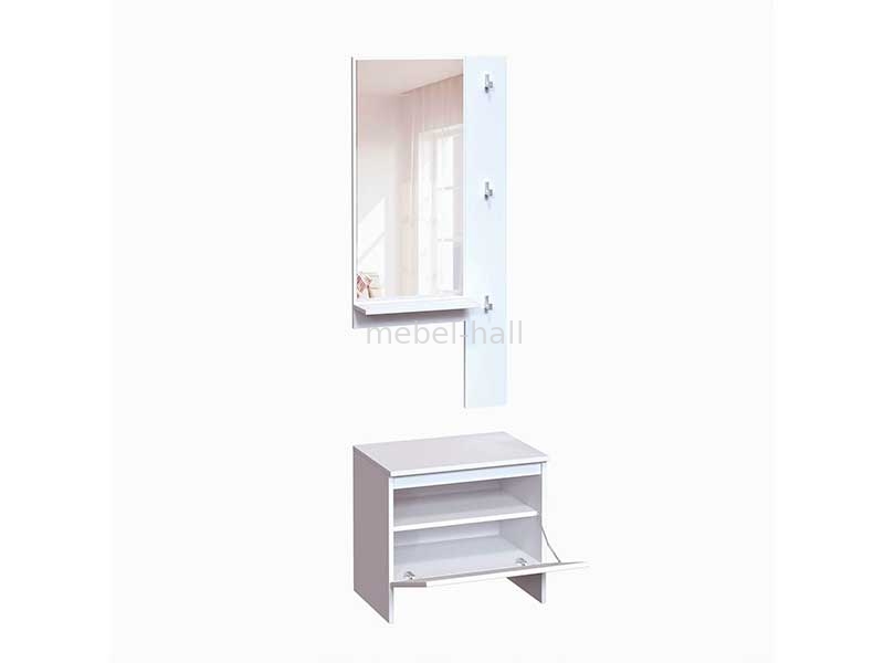 Прихожая с тумбой для обуви, зеркалом и вешалкой Брайт Мастер Форм 550х376х2000h мм ДСП Белый