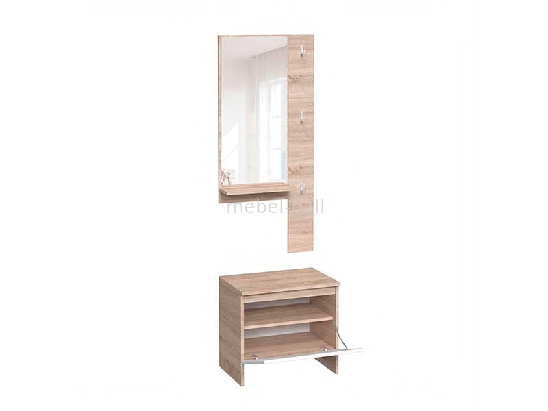 Прихожая мини 550 х 376 х 2000 h тумба для обуви с зеркалом и вешалкой Брайт Мастер Форм ДСП Белый Дуб Сонома