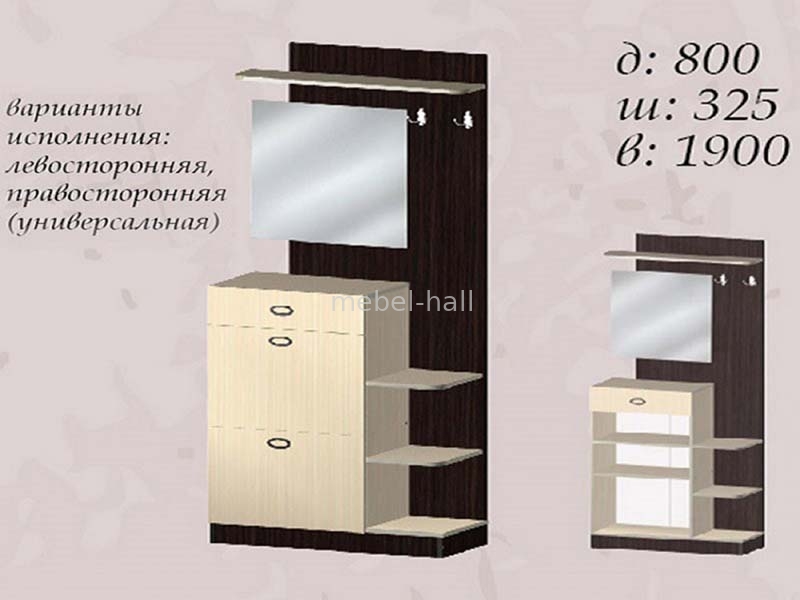 | Особенности: | С полками, С отсеком для обуви, С шкафом, С крючками, С шухлядами, С зеркалом |