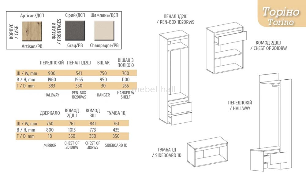 Каждый элемент Модульной Прихожей Торино Мебель Сервис Вы можете подобрать отдельно.