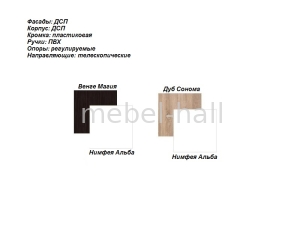 Фасад выполнен из ламинированного ДСП Венге Магия/Нимфея Альба или Дуб Сонома/Нимфея Альба.