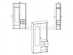 | Особенности: | С полками, С шкафом, С крючками, С шухлядами, С зеркалом |
