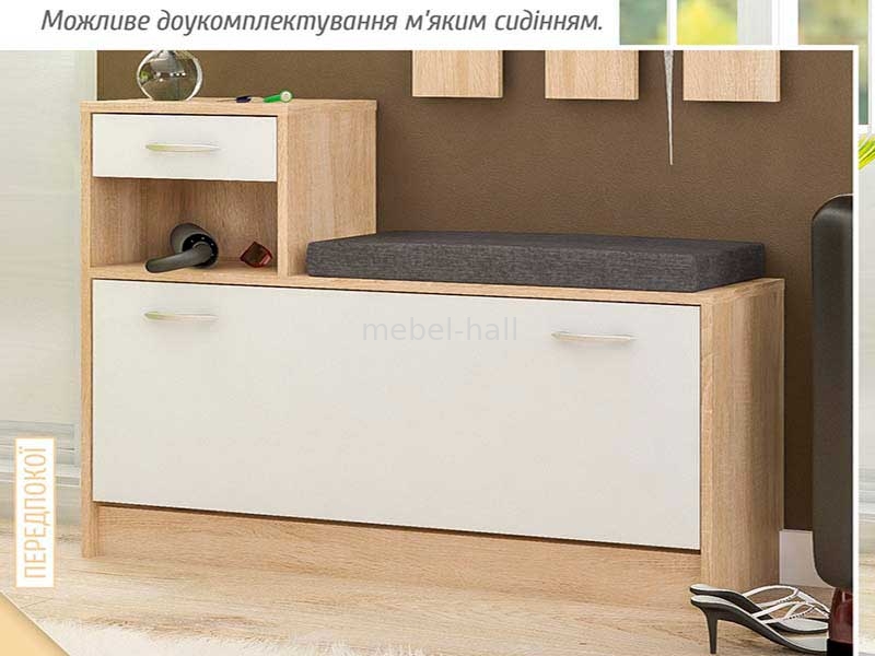 Прихожую можно укомплектовать мягкой подушкой для сиденья.