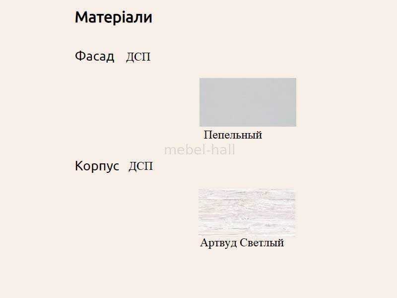 Фасад выполнен из ламинированного ДСП в цвете Пепельный.