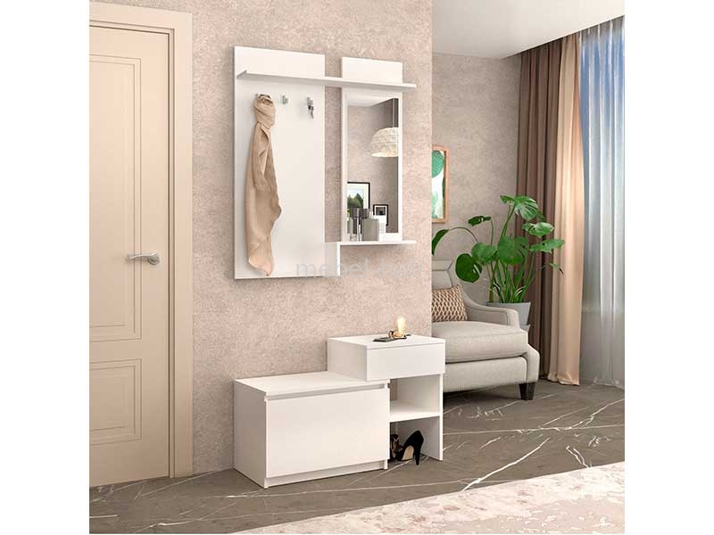 Прихожая с тумбой для обуви и вешалкой с зеркалом Брайт Мастер Форм 900х376х2000h мм ДСП Белый правосторонняя