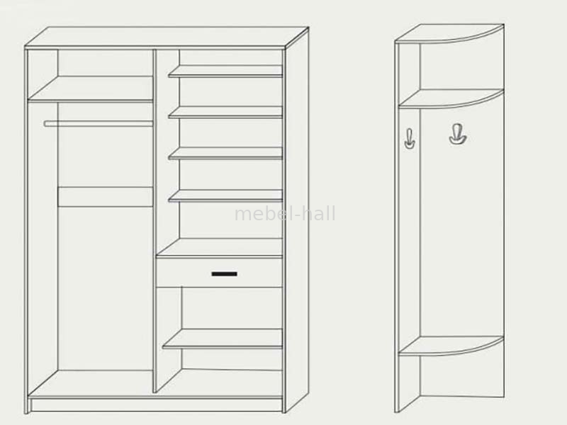 | Особенности: | С полками, С отсеком для обуви, С шкафом, С шухлядами, С зеркалом |