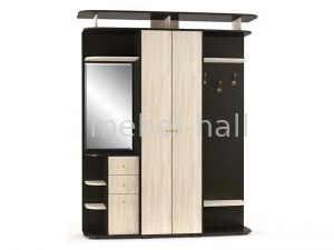 Прихожая Блюз состоит из 3-х секций: вешалки с крючками, шкафа 2 двери с штангой для вешалок, трюмо с зеркалом и выдвижными ящиками.