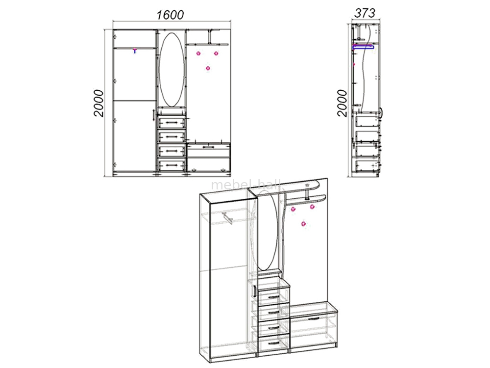 | Особенности: | С зеркалом, С шухлядами, С крючками, С шкафом, С отсеком для обуви, С полками |