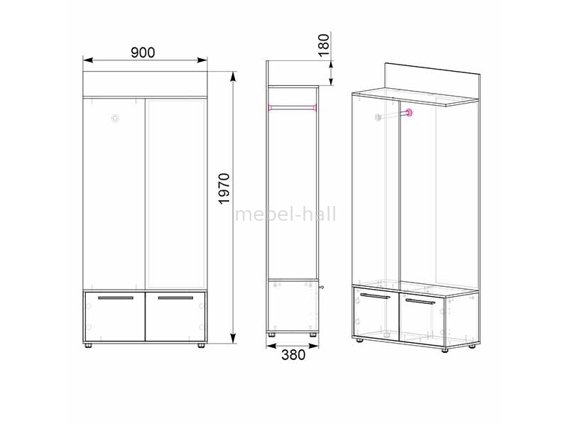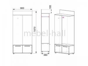 | Особенности: | С отсеком для обуви, С крючками, С зеркалом |