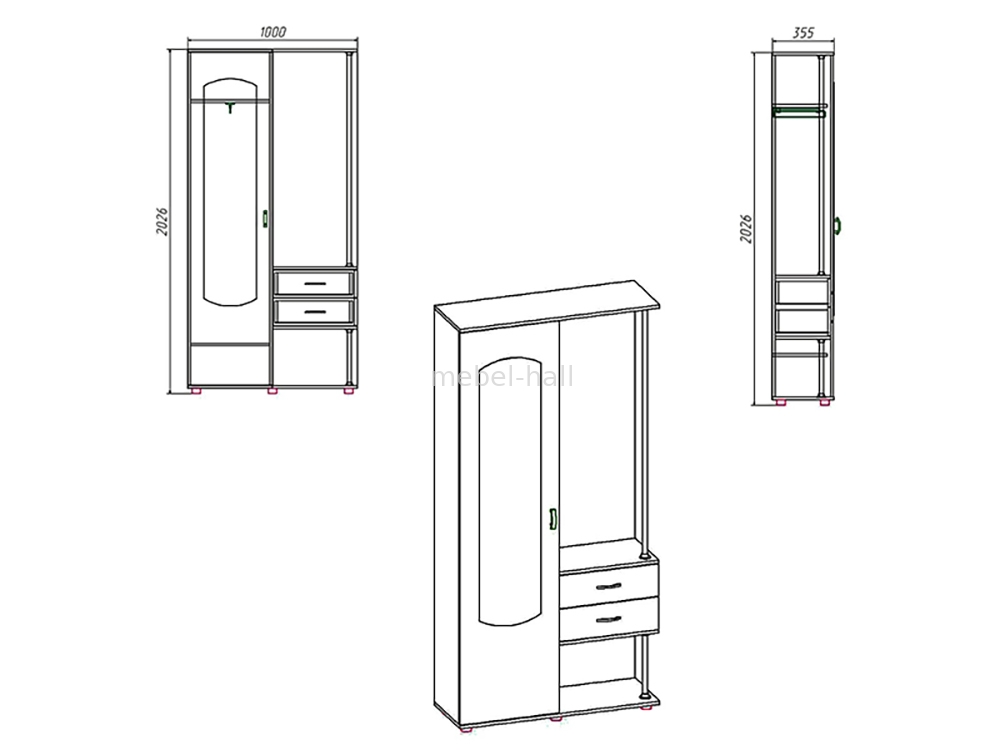 | Особенности: | С полками, С шкафом, С крючками, С зеркалом |