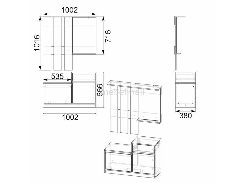| Особенности: | С полками, С отсеком для обуви, С крючками, С зеркалом |