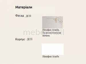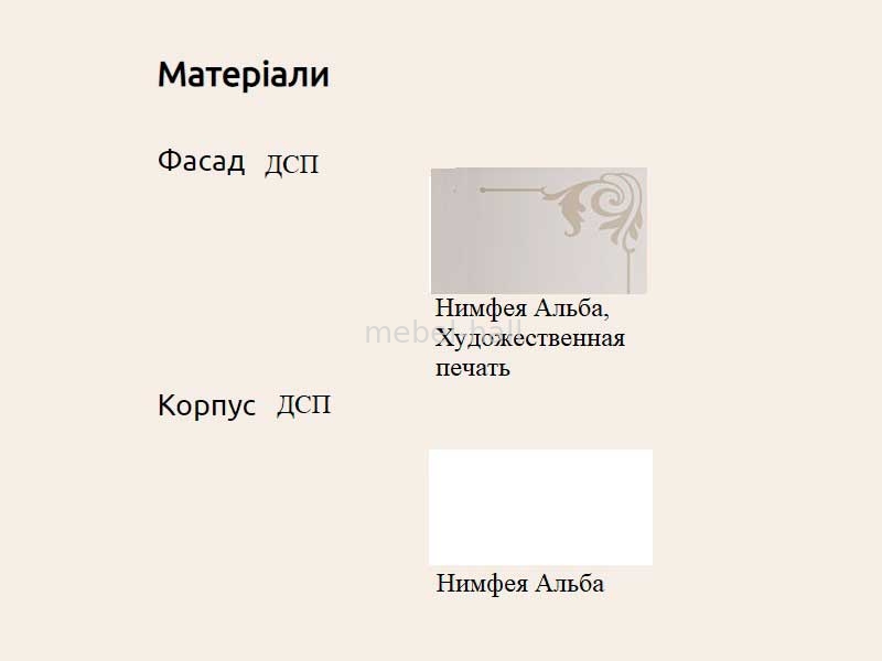 Фасад выполнен из ламинированного ДСП в цвете Нимфея Альба + Художественная печать.