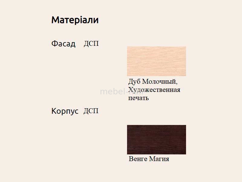 Фасад выполнен из ламинированного ДСП в цвете Дуб Молочный + Художественная печать.