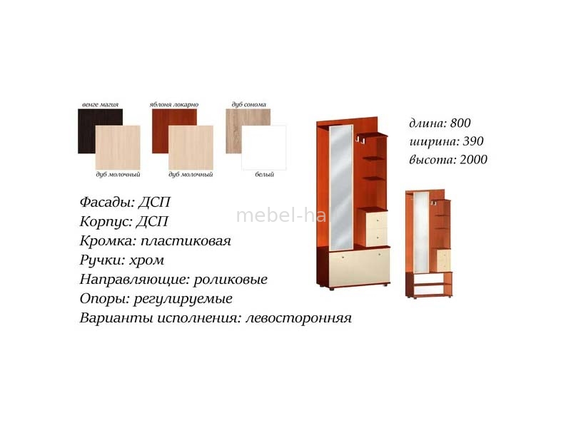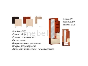 | Особенности: | С полками, С отсеком для обуви, С крючками, С шухлядами, С зеркалом |