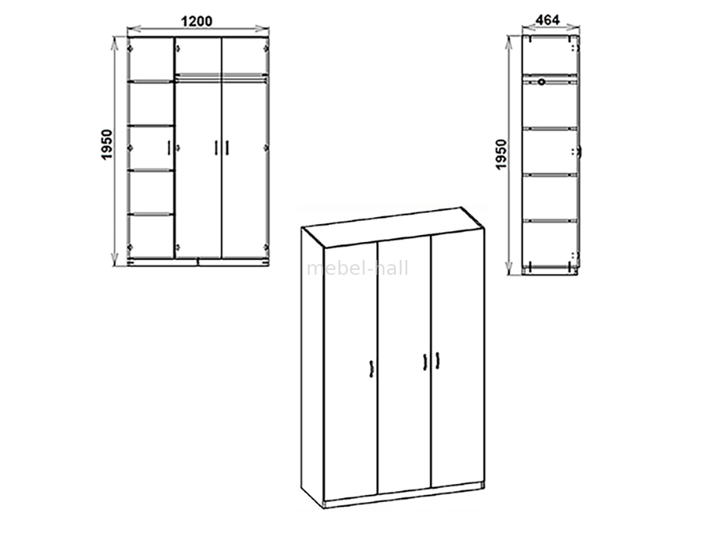 Классический гардероб с тремя дверями модель ШКАФ 15 Компанит