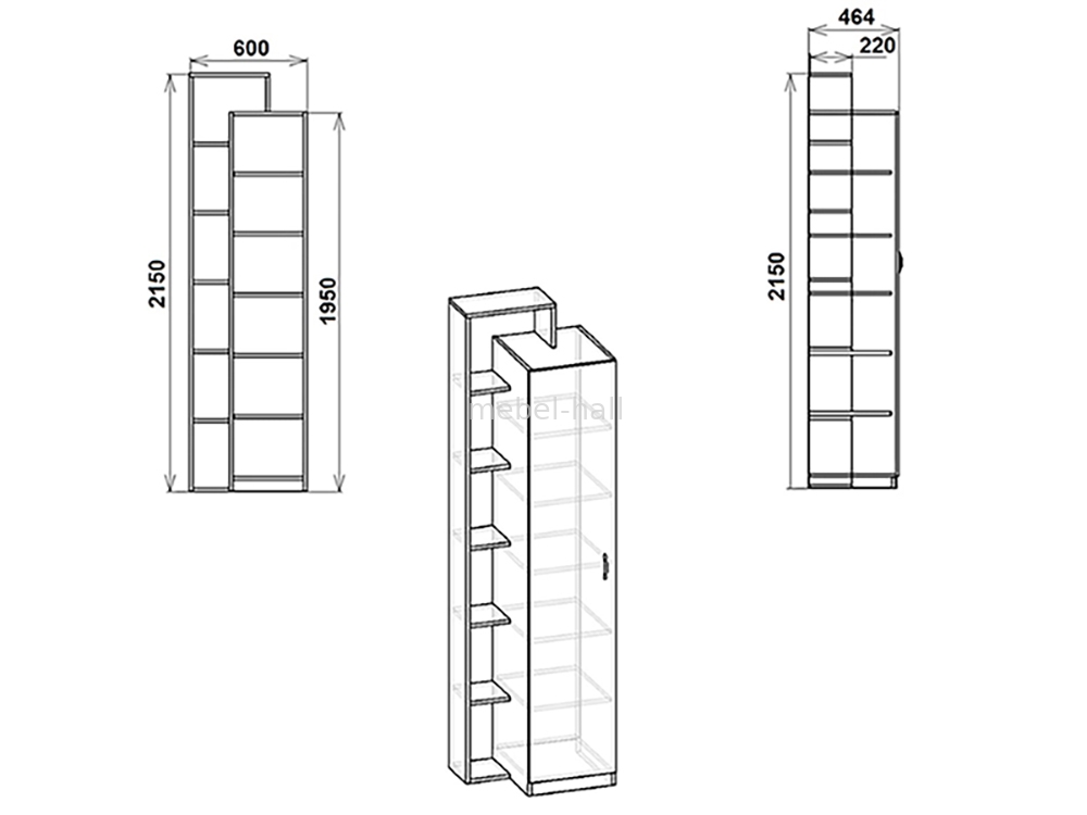 Распашной Шкаф 8 имеет множество полок, как открытых, так и прикрытых дверцей. Он отлично подойдет для хранения мелких вещей книг и небольших комнатных цветов. Выполнен из качественных материалов, которые дают гарантию на долгие годы использования изделия без потери внешнего вида. Большой выбор цветов позволит вам подобрать шкаф именно под интерьер Вашей гостиной. Есть возможность сборки, как правой, так и левой. Ширина непосредственно шкафчика (без внешних полок) 40 см, высота - 195.