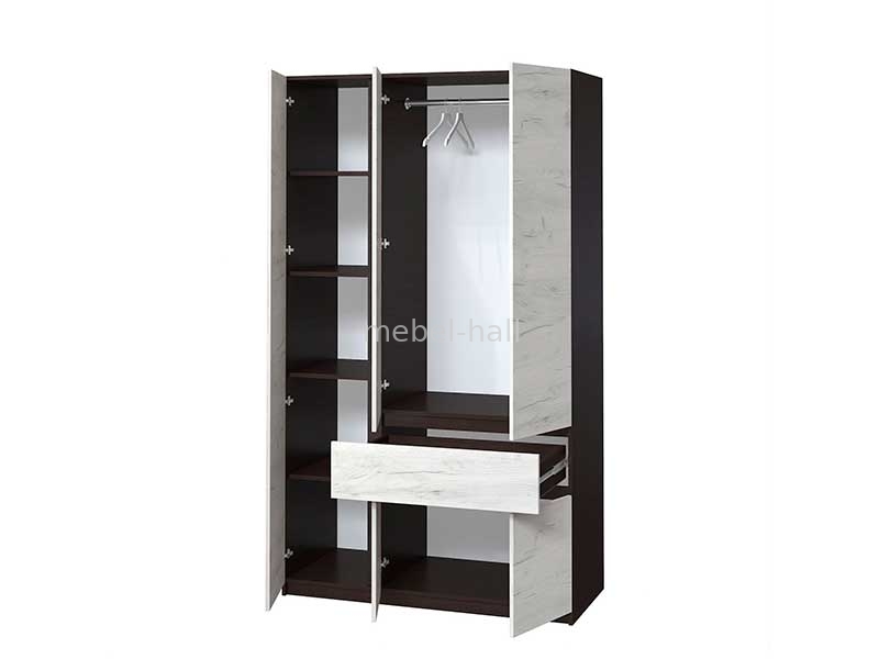 Шкаф распашной 3 двери с 1 ящиком Брайт Мастер Форм 1221х520х2000h мм ДСП Дуб Крафт Белый / Венге Магия