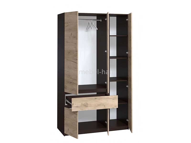 Шкаф распашной 3 двери с 1 ящиком Брайт Мастер Форм 1221х520х2000h мм ДСП Дуб Крафт Серый / Венге Магия