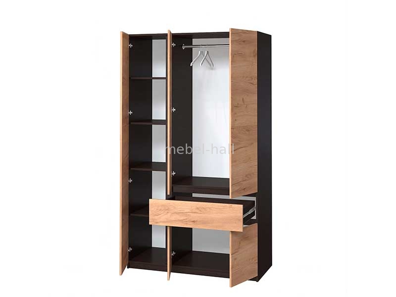 Шкаф распашной 3 двери с 1 ящиком Брайт Мастер Форм 1221х520х2000h мм ДСП Дуб Крафт Золото / Венге Магия