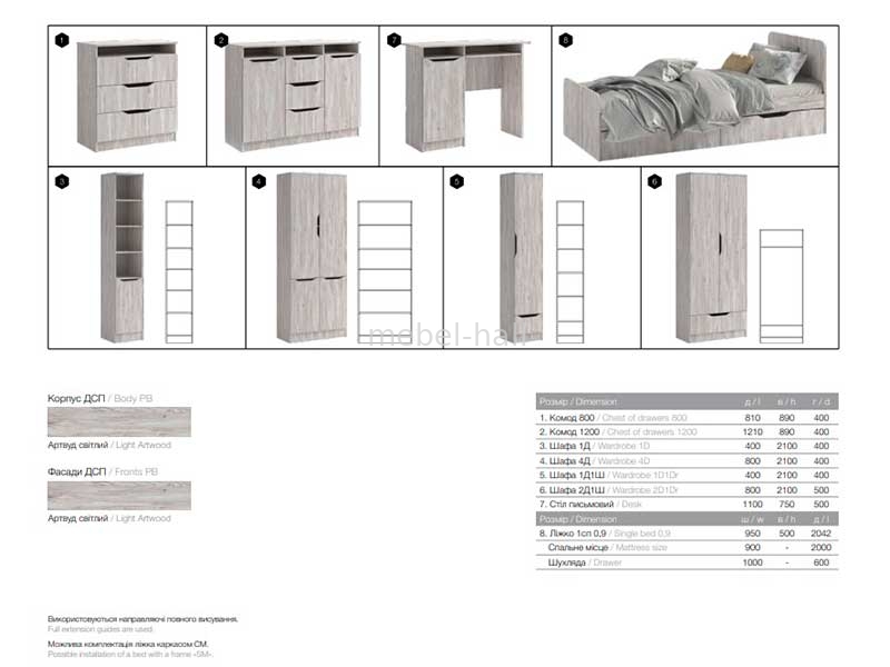 Фасад и корпус выполнен из ламинированного ДСП в цвете Артвуд Светлый.