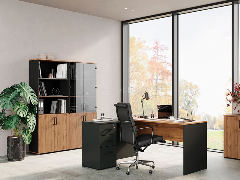 Коллекция модульной офисной мебели "Джуриан MiroMark" привносит в современные интерьеры дух элегантности и функциональности. Обладая сочетанием глубокого антрацитового оттенка на фасадах и изысканной текстуры дуба, эта мебель станет неотъемлемой частью вашего офиса или домашнего кабинета, создавая идеальное рабочее пространство. Каждая деталь продумана до мелочей, обеспечивая идеальное сочетание лаконичности и функциональности.
