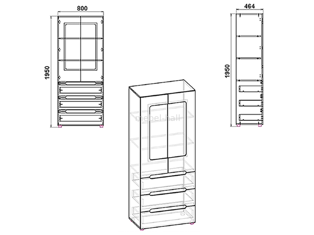 Распашной шкаф с тремя шухлядами и витриной модель 21 МС МДФ Стиль Компанит