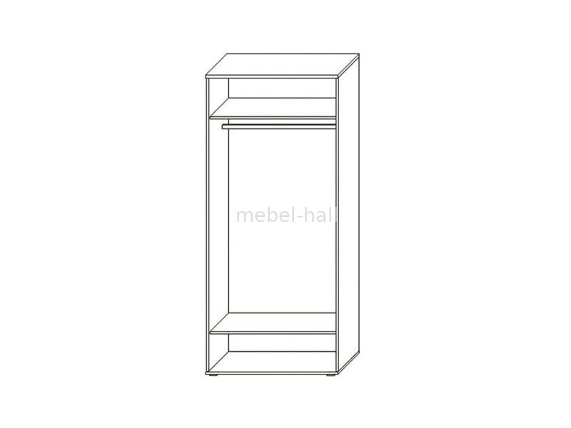 Внутри шкаф имеет полки сверху и снизу, а также штангу для вешалок. Изделие оснащено качественной мебельной фурнитурой.