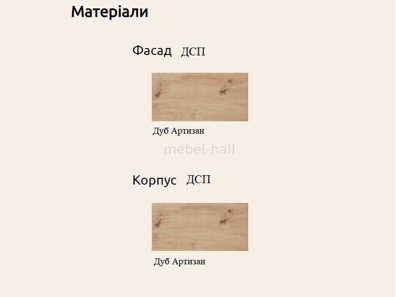 Корпус выполнен из ламинированного ДСП в цвете Дуб Артизан.