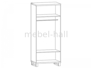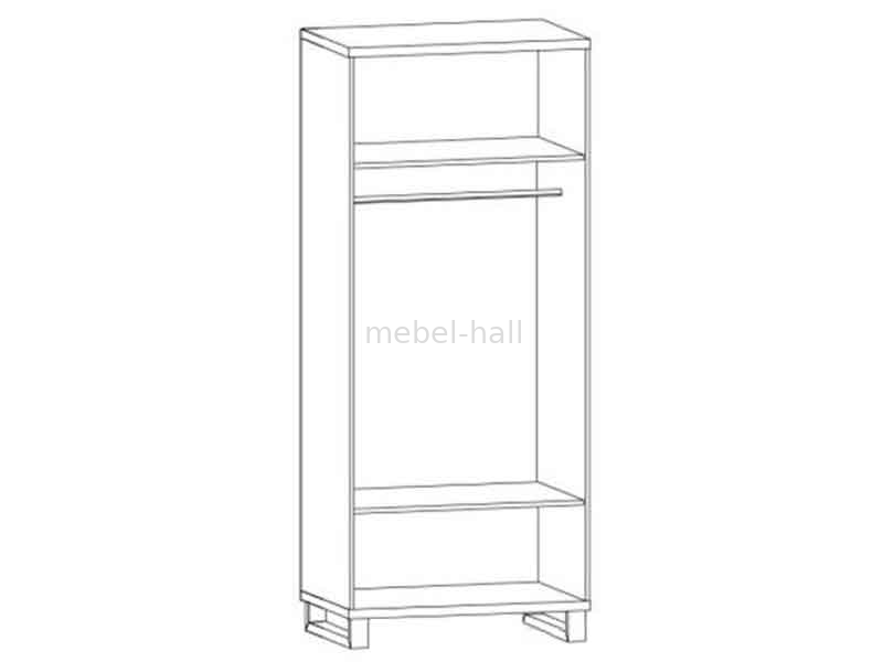 Внутри шкафа расположена штанга для вешалок и полки сверху и снизу для вещей.