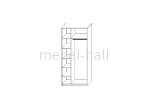 Внутри шкафа слева расположены 6 полок, справа - полка сверху и штанга для вешалок. Шкаф оснащен качественной мебельной фурнитурой.