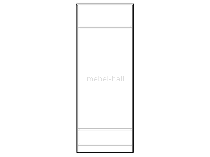 Внутри шкаф имеет штангу для вешалок и полки сверху и снизу.