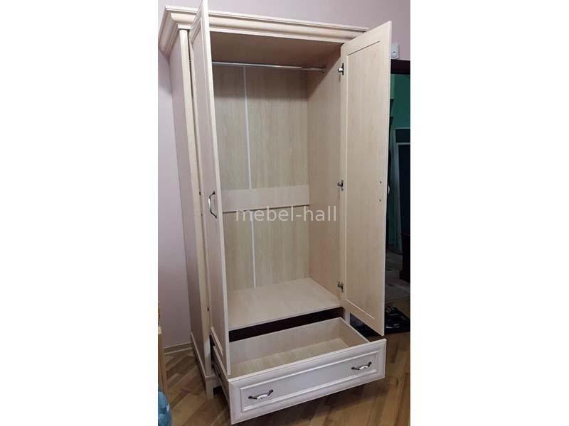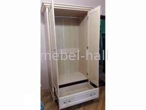 Шкаф внутри имеет штангу для вешалок и одну шухляду на направляющих полного выджвижения, что гарантирует плавность и надежность при выжвижении.