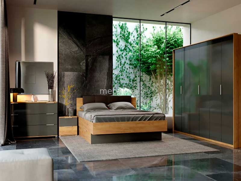 Мебель выполнена в современном стиле от украинской мебельной фабрики MiroMark. Гармоничное сочетание красивых матовых фасадов и корпуса из благородного дерева. Изделие укомплектовано алюминиевыми профильными ручками.