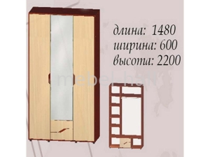 Распашной шкаф 3 двери 2 шухляды с зеркалом Доминика Мастер Форм