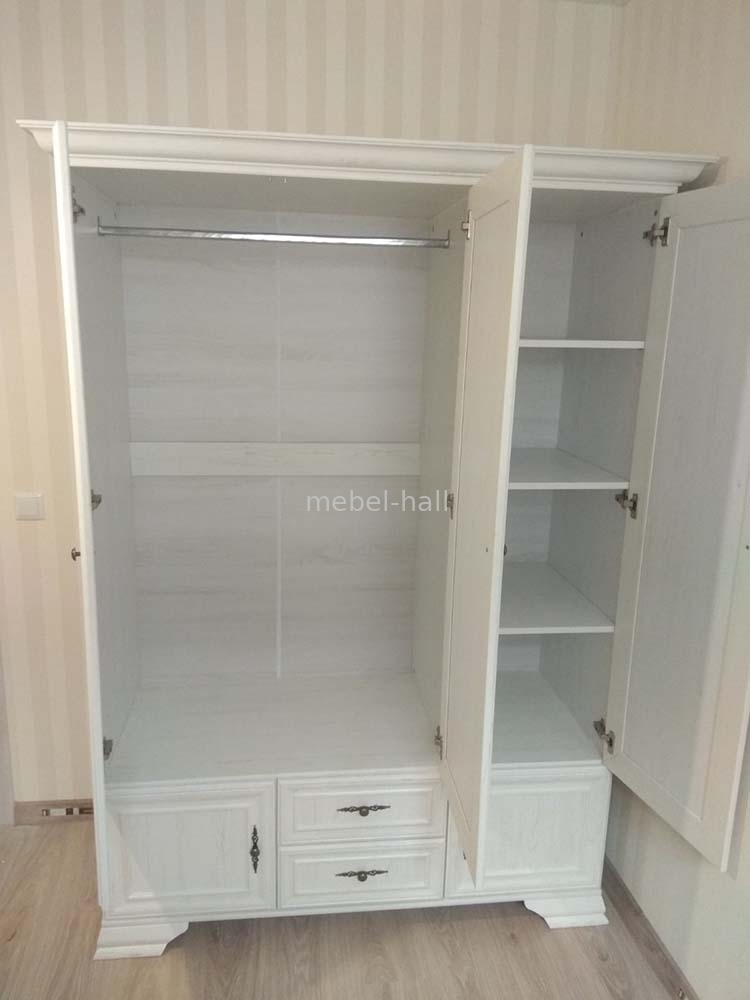 Шкаф 3Д Ирис - стильный, светлый, современный распашной шкаф с зеркалом и шухлядами от украинского производителя Мебель Сервис. Выполнен в стиле кантри, что подчеркивает простоту и лаконичность, в сочетании с утонченностью и изысканностью. Цветовая гамма изделий Ирис представлена древесной тёплой структурой белого оттенка андерсон пайн. Все ящики элементов на телескопических направляющих, что гарантирует плавность при выдвижении и надежность. Латунные изысканные ручки используются в качестве декора. За счет светлых тонов, шкаф не будет перегружать пространство, а оставит ощущение комфорта и уюта.