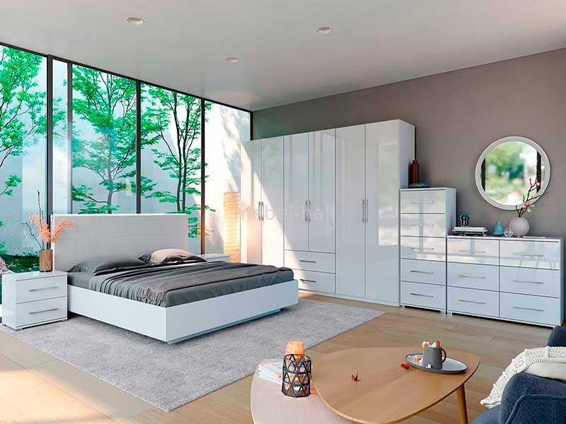 Модульная мебель в современном стиле от украинской мебельной фабрики MiroMark. Органичный дизайн, чисто белый цвет, металлические хромированные ручки, помогут оформить стильный интерьер спальной комнаты.