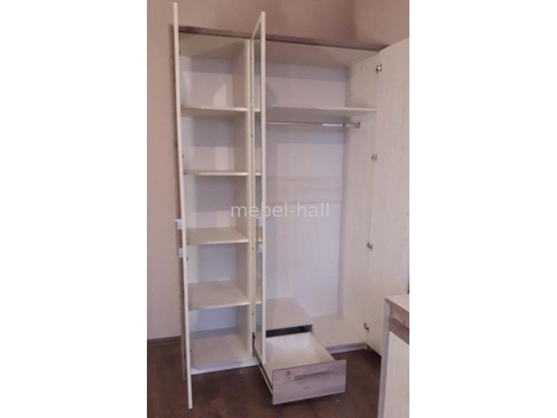 Современный шкаф 3Д Сара Сокме удачно сочетает в себе функциональность и классический дизайн, и предназначен для обустройства изысканной спальни, гостиной или прихожей. Шкаф подходит для хранения любых вещей и включает в себя отделение с штангой для вешалок и полкой сверху и отделение с пятью полками, а также один выдвижной ящик снизу. Шкаф привлекает к себя внимание современным дизайном, нежной приятной текстурой древесины, продолговатыми ручками, крепким основанием, способствующим максимальной устойчивости, фирменными комплектующими, обеспечивающими максимальный комфорт в использовании. Современный дизайн прекрасно дополнит любой интерьер, а сочетание таких цветов как «мадагаскар/нельсон» и «пино аурелио», визуально увеличит пространство и придаст ему легкость.