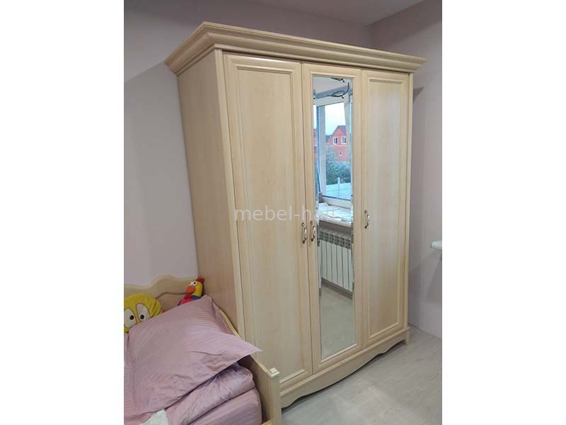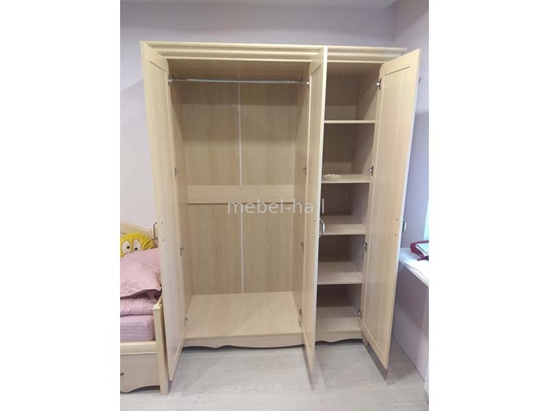 Шкаф 3Д СЕЛИНА от украинской фабрики "Світ Меблів". Современный шкаф в натуральных теплых оттенках клена. Характеризуется правильными геометрическими формами, прямыми линиями, простым и лаконичным исполнением, который создаст уют и крепкий сон в спальне вашего ребенка. Такой шкаф создаст атмосферу романтики и комфорта в спальне настоящей принцесы. Винтажный стиль изделия подчеркивают волнистые линии цоколя и металлические ручки.