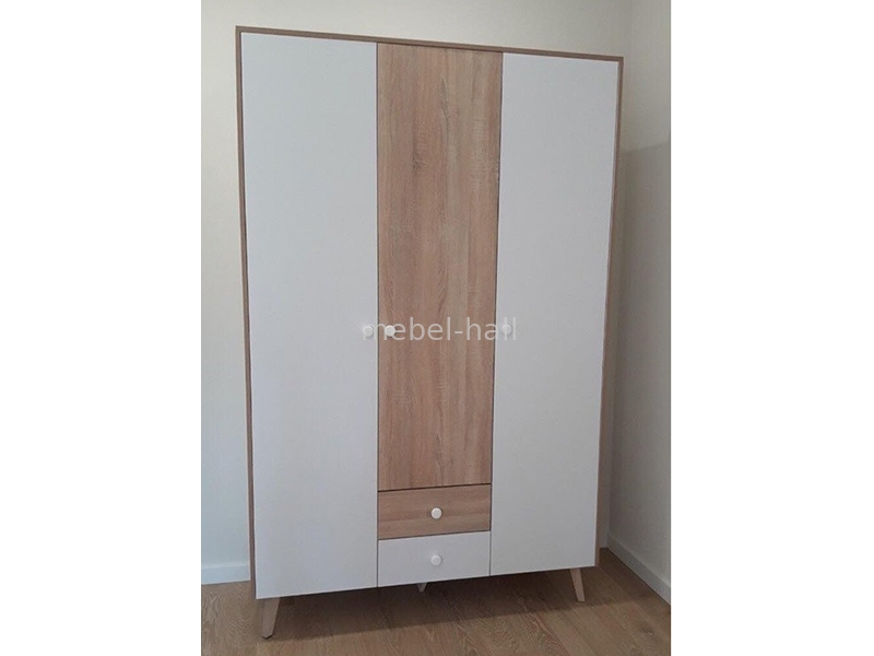Шкаф распашной ЭРИКА 3 двери и 2 шухляды на ножках ДСП Дуб сонома и Белый