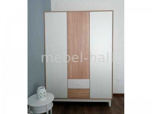 Шкаф распашной 3 двери 2 шухляды Глория Мебель Сервис ДСП Белый / Дуб Самоа
