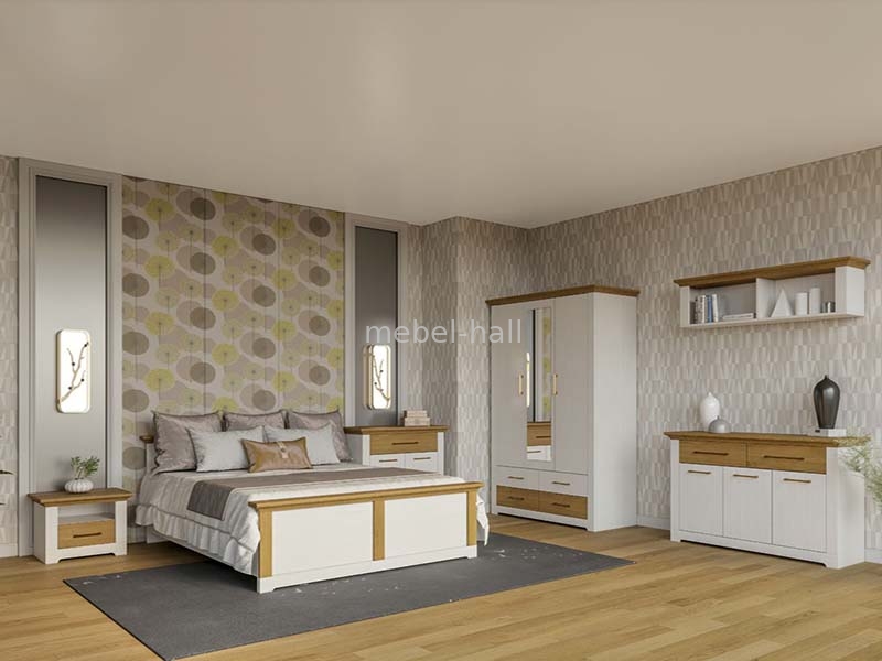 Шкаф 3Д4Ш ВАЛЕРИО - стильный, светлый распашной шкаф в спальню украинского производителя Світ Меблів. Выполнен в стиле кантри, что подчеркивает простоту и лаконичность, в сочетании с утонченностью и изысканностью. Цветовая гамма изделий ВАЛЕРИО представлена идеальным сочетанием древесной тёплой структуры дуба каменного и белого оттенка сосны водевиль, создаст уют и комфорт в вашей комнате. Золотистые ручки используются в качестве декора.