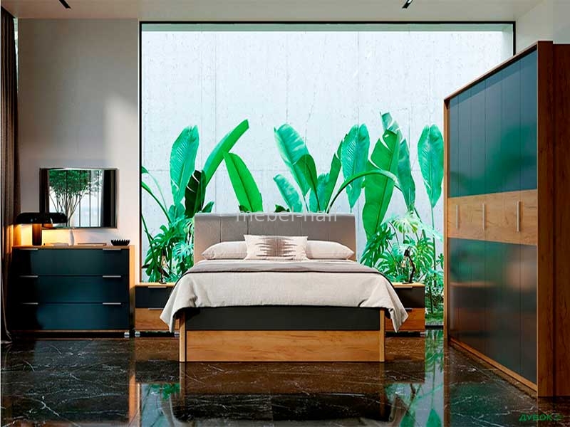 Мебель выполнена в современном стиле от украинской мебельной фабрики MiroMark. Гармоничное сочетание красивых матовых фасадов и корпуса из благородного дерева, продолговатые алюминиевые профильные ручки, делают изделие стильным и неповторимым.