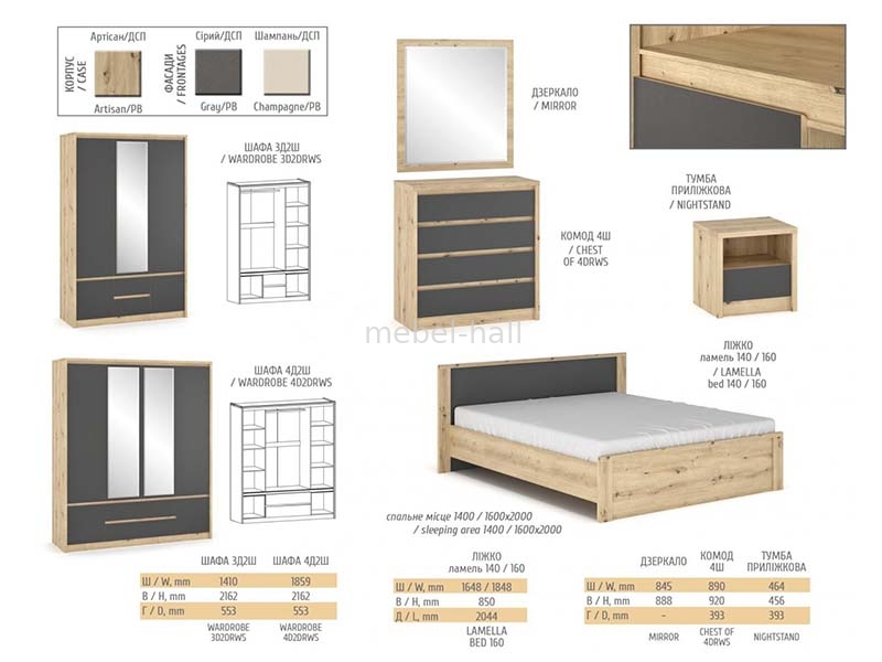 Шкаф входит в комплект Спальни Доминика Мебель Сервис Серая, каждый элемент этой спальни Вы можете подобрать отдельно.