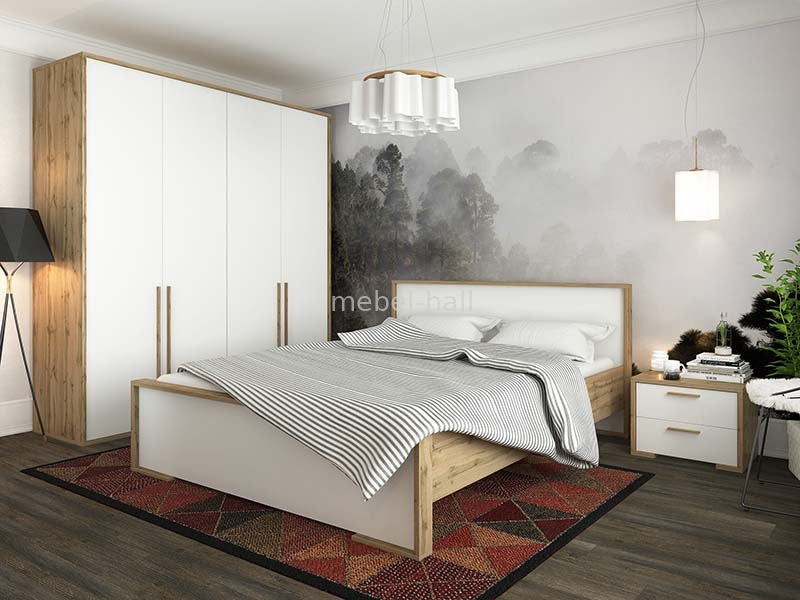 Фасады выполнены из ламинированного ДСП Белого цвета, которые подчеркивают текстуру древесины корпуса и придают спальне современный характер.