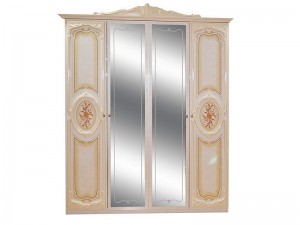 Шкаф Кармен Новая с четырьмя дверьми Світ Меблів Пино Беж от украинской фабрики "Світ Меблів". Классический шкаф в итальянском стиле, характеризуется изысканным дизайном, роскошными формами с изящной декоративной резьбой и оригинальными ручкам, сочетающиеся с художественной росписью на фасадах. Внутри шкаф разделен на две секции: в правой нише расположена штанга для тремплей и полка сверху, в левой - пять полок одинаковой высоты. Шкаф Кармен Новая достоин королевских апартаментов.