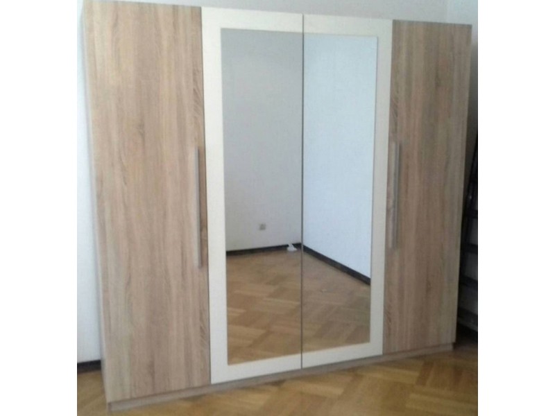 Шкаф Лилея Новая с четырьмя дверьми Світ Меблів Дуб Сонома от украинской фабрики "Світ Меблів". Современный вместительный шкаф, с оригинальными двухцветными фасадами и зеркалами на центральных дверях. Каждая дверь оснащена продолговатой аккуратной ручкой. В середине шкаф разделен на две секции, в правой размещена штангами для тремпелей и одна верхняя полка, в левой - пять вместительных полок одинаковой высоты. Шкаф Лилея Новая украсит самый изысканный интерьер.