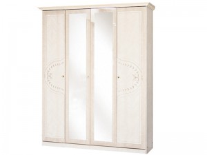 Шкаф Опера с четырьмя дверьми Світ Меблів Роза от украинской фабрики "Світ Меблів". Классический шкаф в итальянском стиле, характеризуется изысканным дизайном, роскошными формами с изящной художественной печать на фасадах и зеркалами на центральных дверях. В середине шкаф разделен на две секции, в каждой из них размещена ниша с штангой для тремпелей, в левой части есть одна полка внизу, а в правой - полка вверху. Шкаф Опера достоин королевских апартаментов.